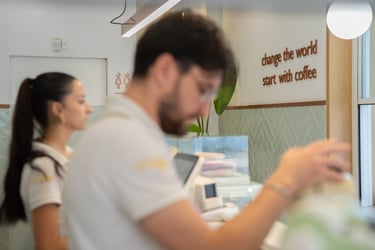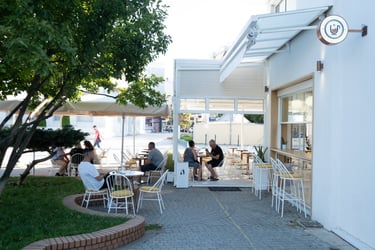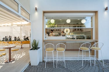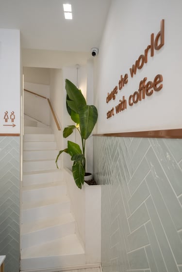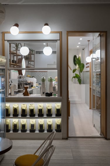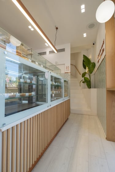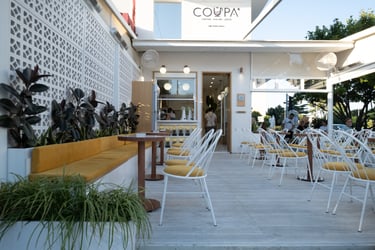 Architecturally, the café is defined by clean lines, open spatial connections, and the subtle balance between natural light and material texture. Warm wood tones, neutral surfaces, and soft lighting create a contemporary yet inviting atmosphere. The layout encourages visual and physical continuity between interior and exterior, reinforcing Coupa Café’s identity as a modern social hub at the heart of Komotini.