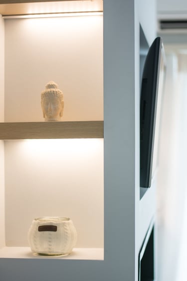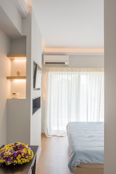 The flat is located at Hrakleion Athens. The completion of the construction and the identity attribution to the whole apartment was the main purpose of this project.