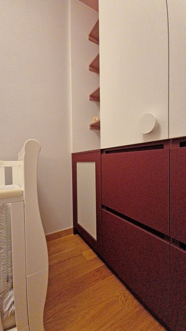 In the final phase, the master suite was expanded to include a private office and en-suite bathroom, while a new child’s bedroom was created to meet the needs of a growing family. The design emphasizes natural light, soft textures, and a serene palette — creating a sophisticated yet inviting atmosphere tailored for modern family life.
